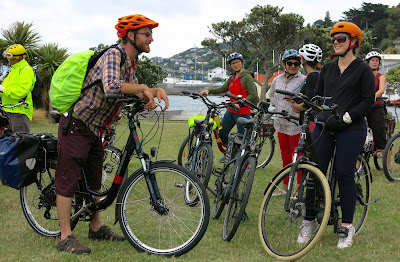 Yesterday we went on a e-bike group ride, organised by Switched On Bikes. This is a company set up in 2015 by Ryan O’Connell, who is very keen to promote electric bikes as a great means of getting around Wellington. He has a fleet of e-bikes for hire, and also sells e-bikes, and he runs e-bike tours of Wellington. This ride was one of the free Wellington Region Summer Cycling Events.